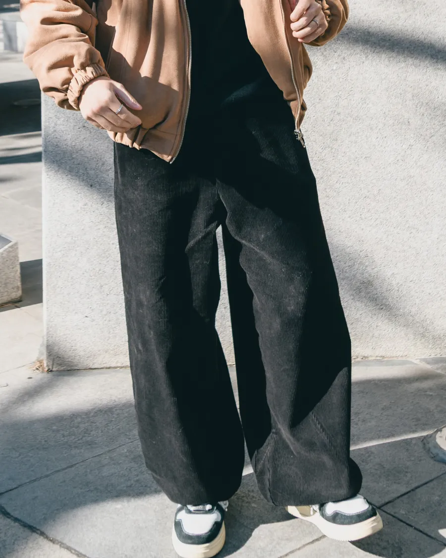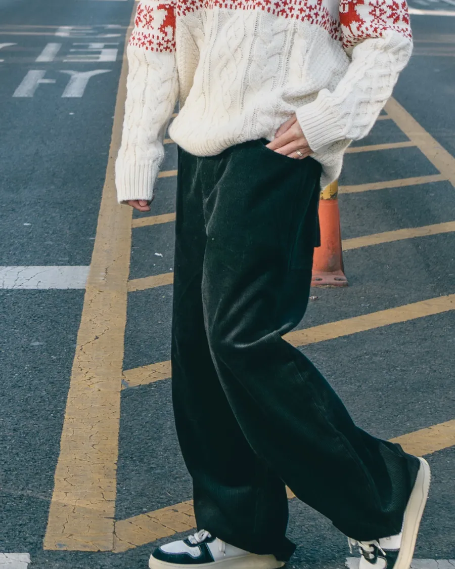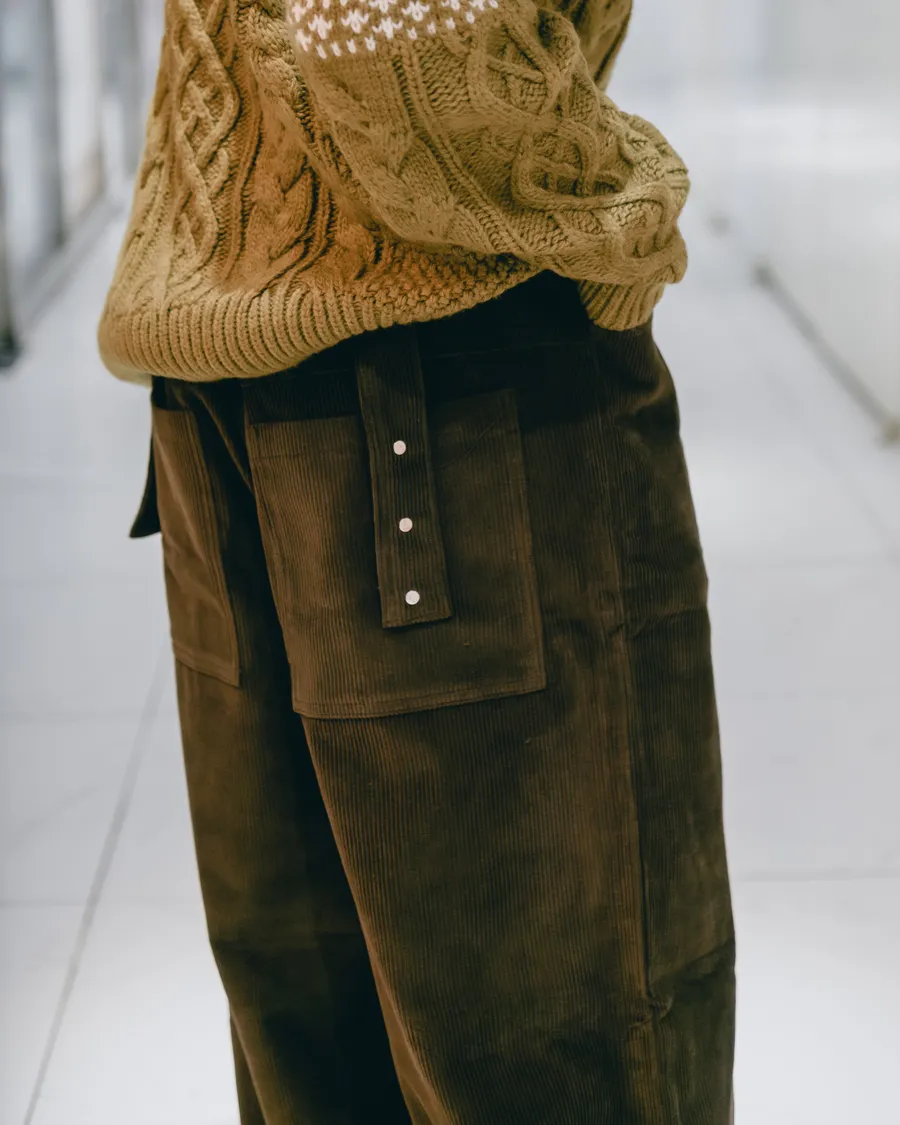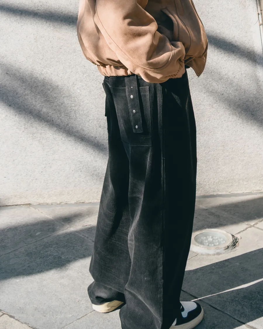 交叉排釦縮腰燈心絨闊形闊腿褲