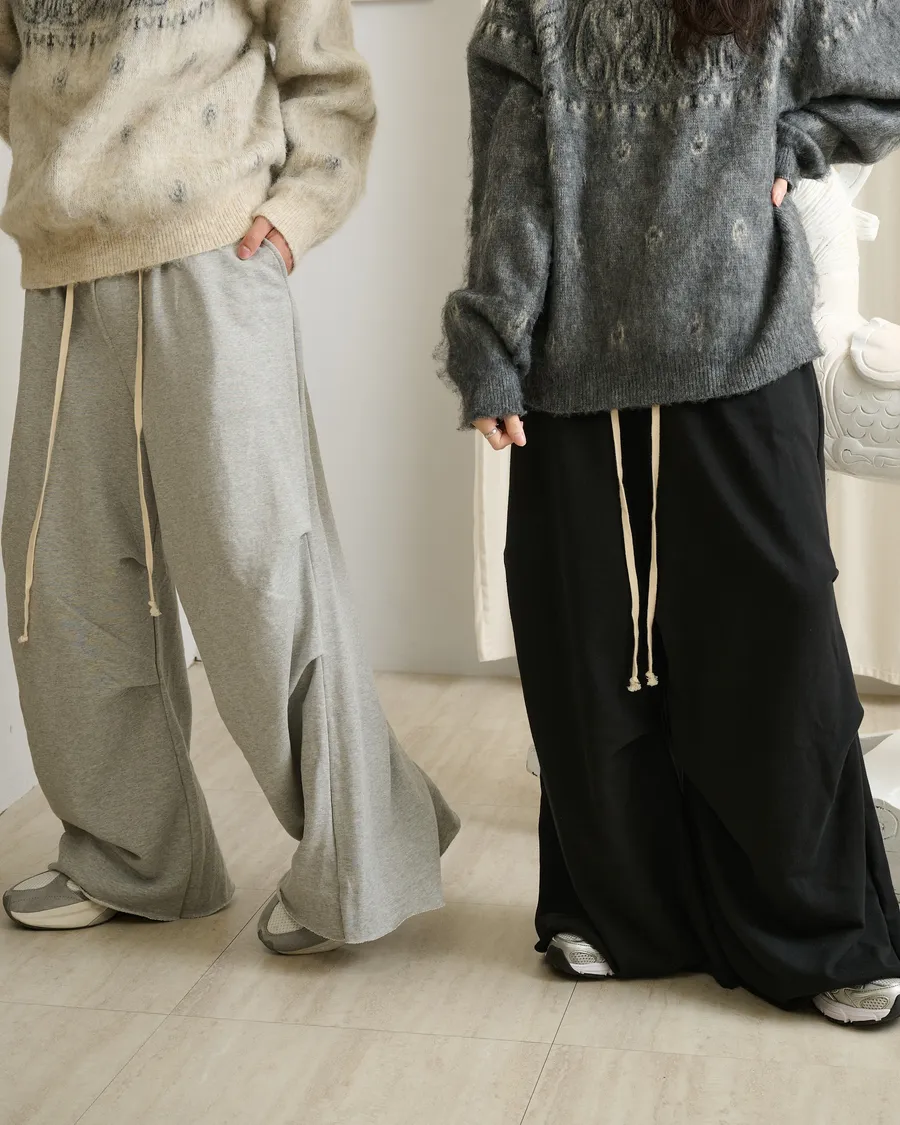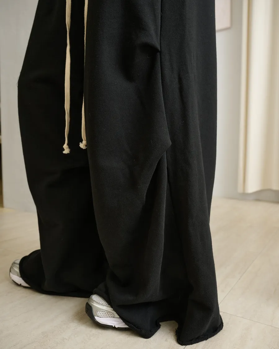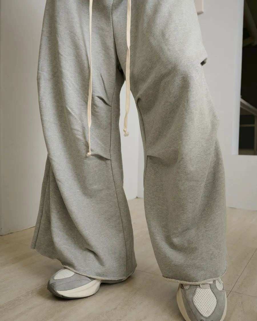 垂感落地不收邊層次寬筒棉褲
