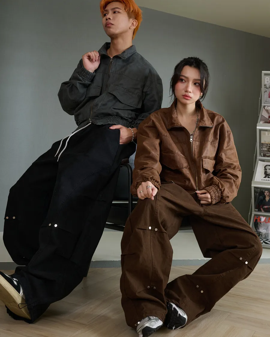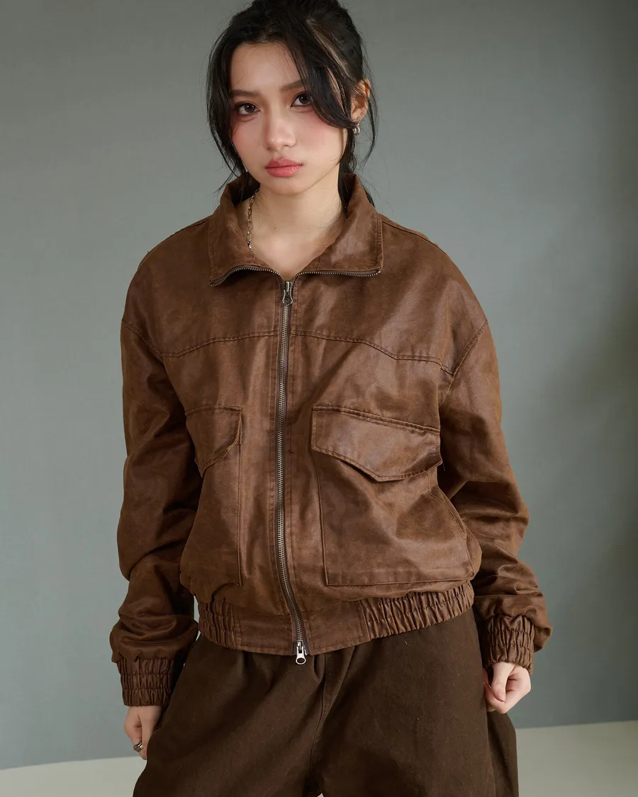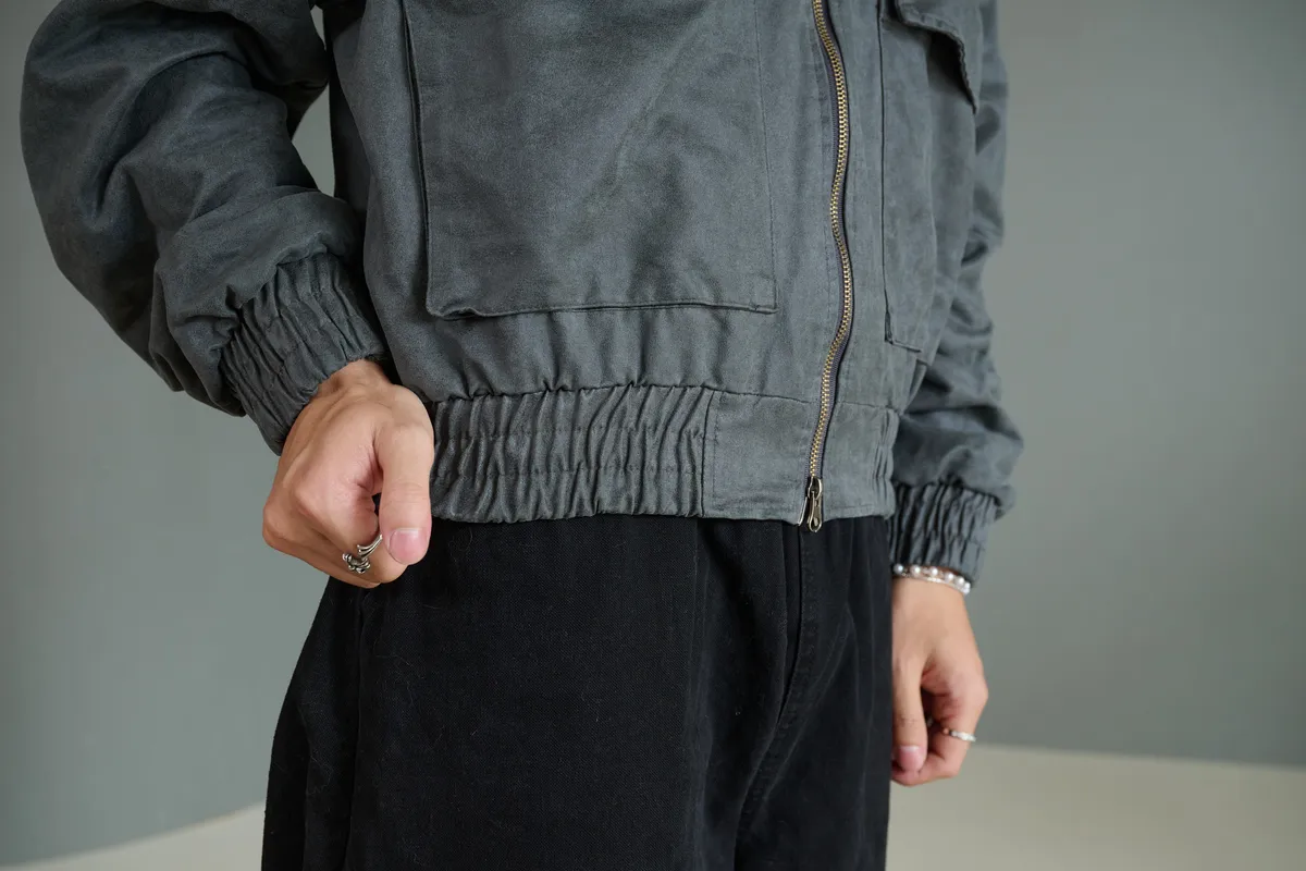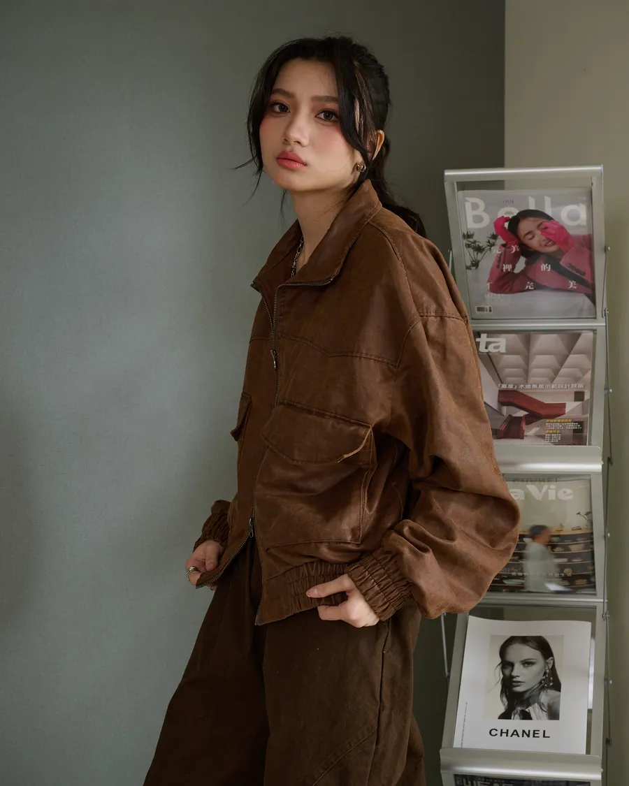 短版剪裁優化視覺效果|下擺縮口顯腰設計|雙向拉鍊穿搭更有風格|韓國熱賣款