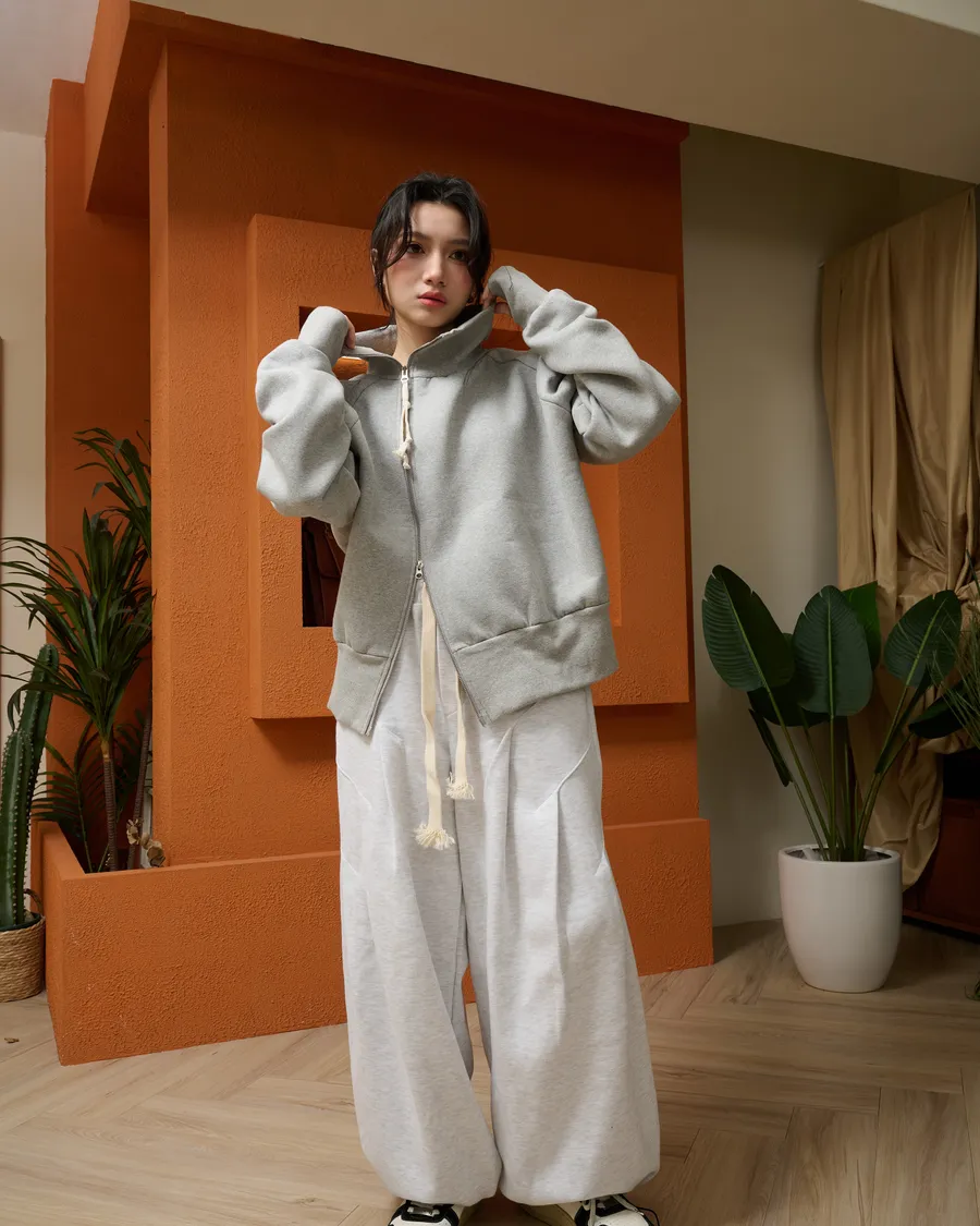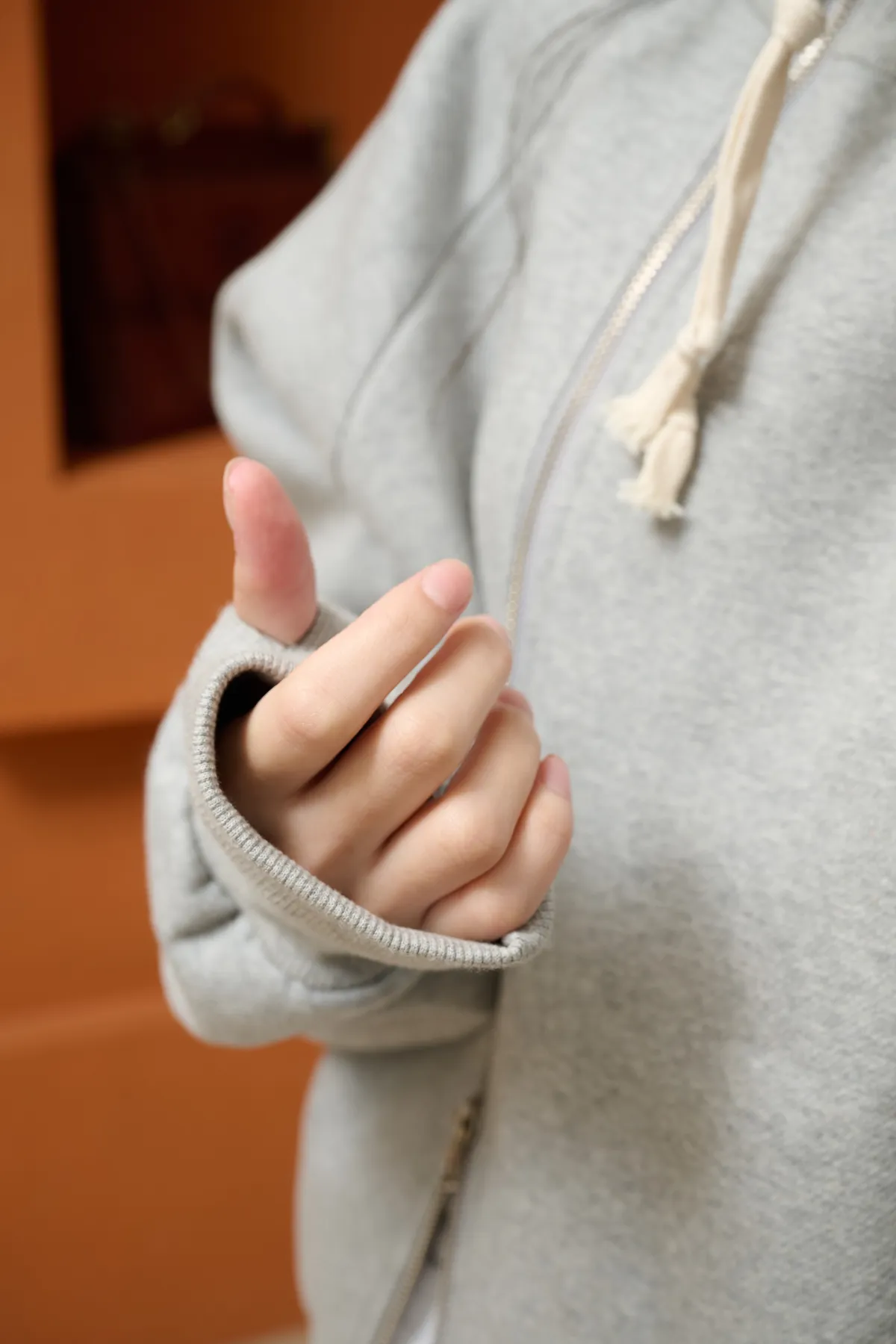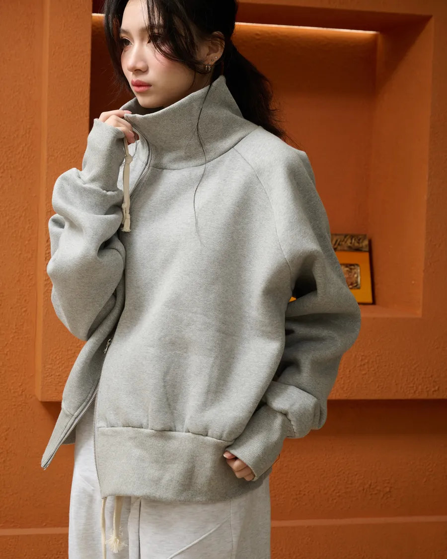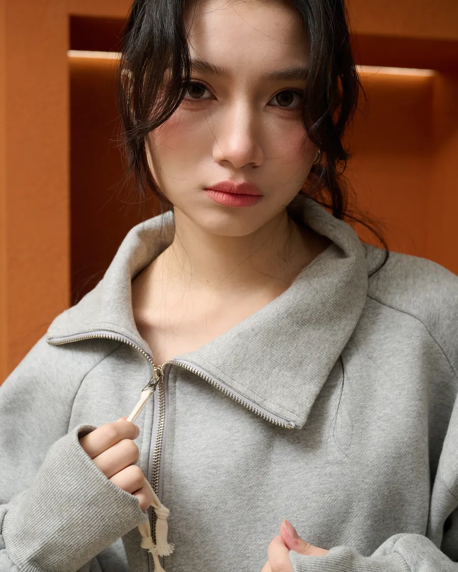 高領口設計|特殊側身拉線|雙向拉鍊修飾整體比例|袖縮口留有拇指開口防風設計